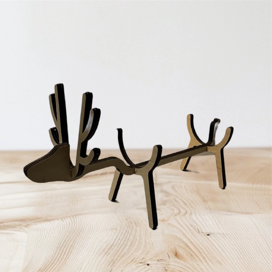 Ez a szarvas formájú, 3 mm vastag rétegeltlemezből készült masszív bortartó nem csupán egy praktikus tároló, hanem egyben rendkívül dekoratív és stílusos ajándék is. A szarvas motívumja nemcsak egyedi megjelenést kölcsönöz neki, hanem egyben ünnepi és természetközeli hangulatot is teremt.