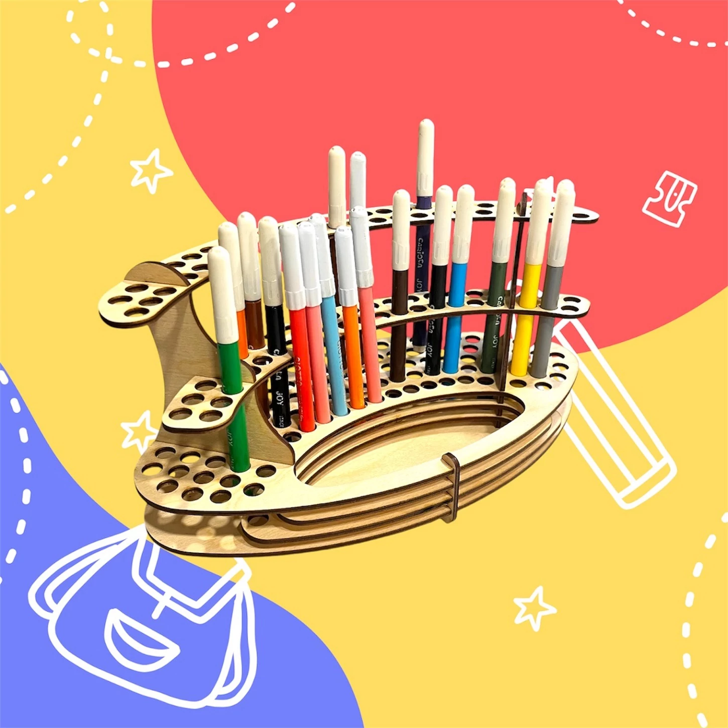 Ez az egyrekeszes ceruzatartó 3 mm-es rétegelt lemezből készült, és óriási tárolókapacitással rendelkezik—91 ceruzát elnyel. Elöl nagy tárolóval, radir- és hegyezőtartóval, valamint apróságok tárolására alkalmas rekesszel rendelkezik. Ideális gyerekek íróasztalára.