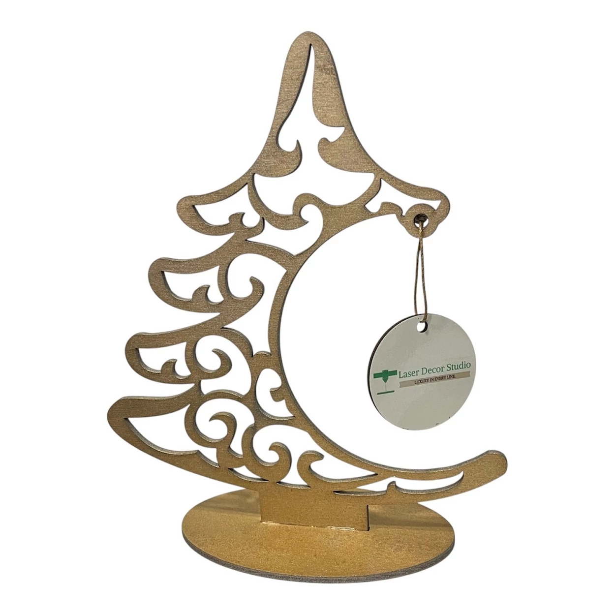 Elegáns karácsonyi dísz holdas karácsonyfa formában, saját fényképpel.
