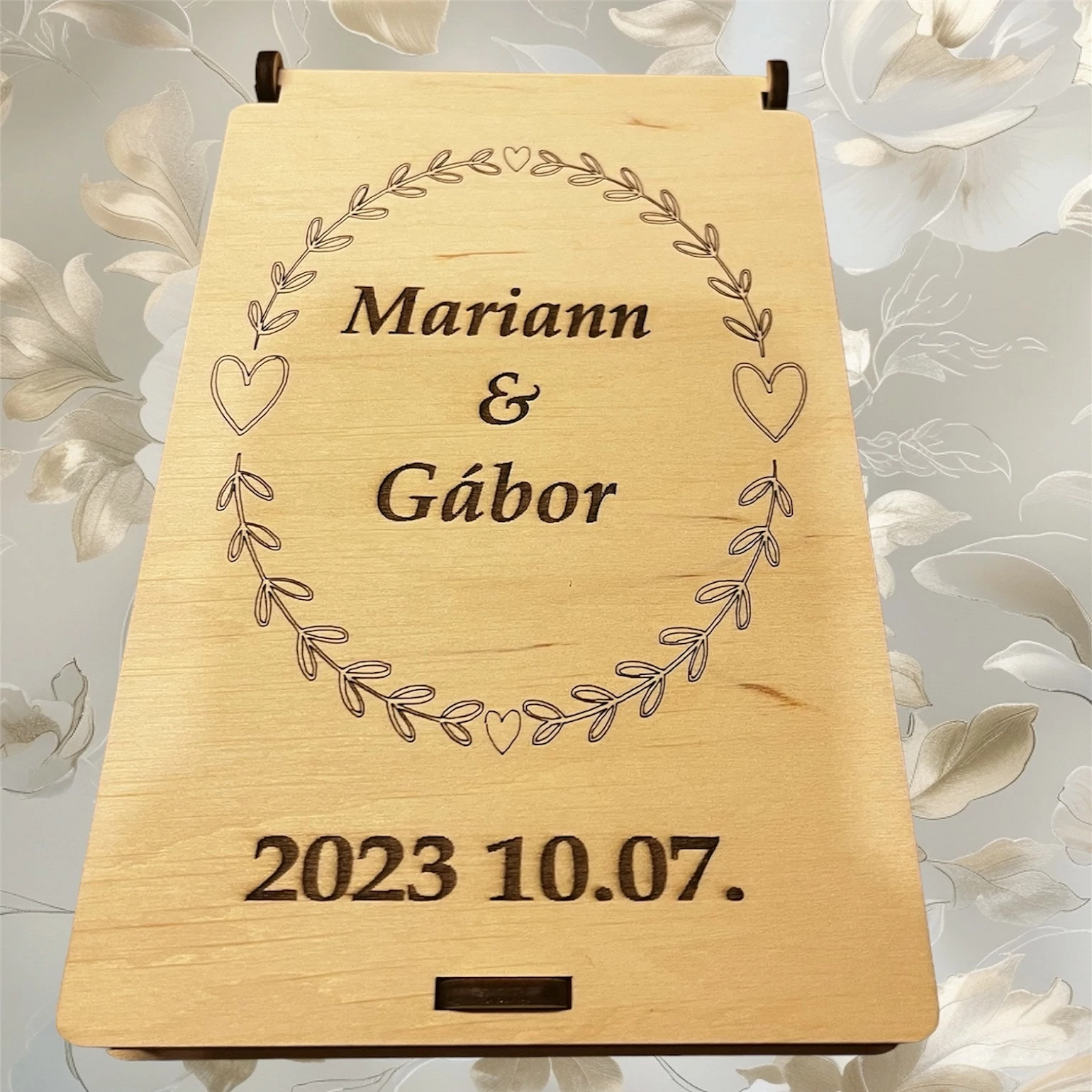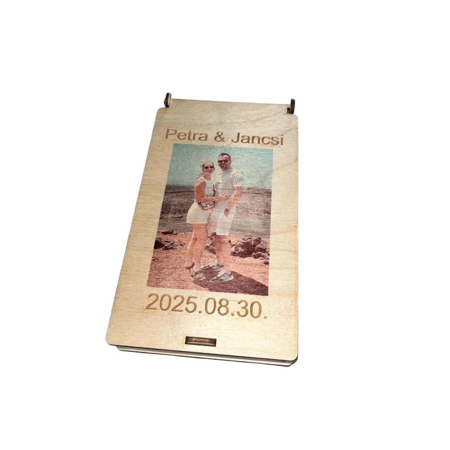 Ez a különleges pénzátadó dobozka nem csak egy ajándéktárgy, hanem egy emlék is, amely megőriz egy fontos pillanatot az életben. A 3 mm vastag rétegelt lemezből készült dobozka egyedi mintával és személyre szabott felirattal rendelkezik, hogy tökéletesen illeszkedjen az alkalomhoz, legyen az egy esküvő, ballagás vagy bármilyen más ünnepélyes esemény.