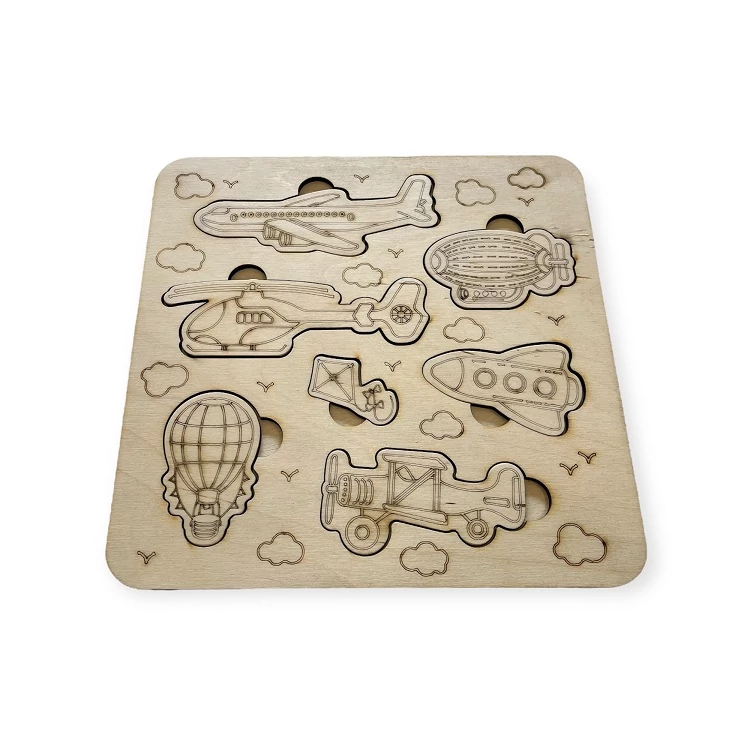 Fából készült légi járműves kirakójáték, amely fejleszti a gyerekek finommotoros készségeit és megismerteti őket a repülés világával. Környezetbarát, biztonságos és sztrapabíró kivitelben.