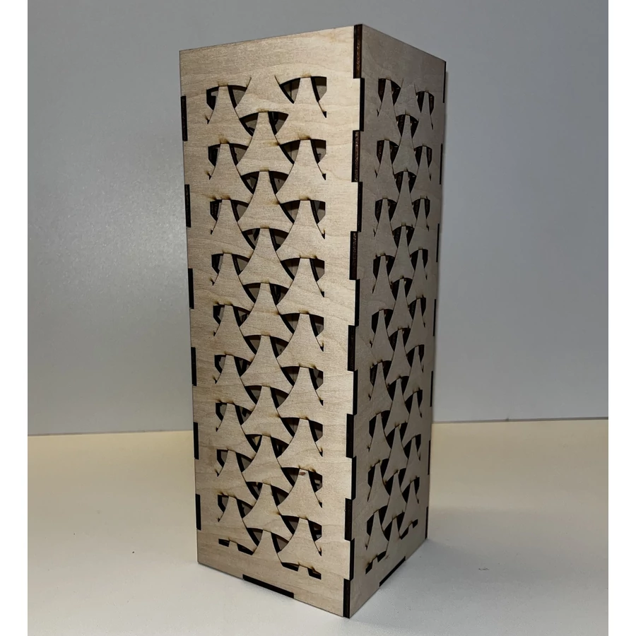 Ez a gyönyörű éjjeli lámpa nem csupán világít, hanem egy kis művészetet is csempész a szobádba.3 mm vastag rétegelt lemezből készül 265mm magas 95mm széles és 95mm mély méretben. A finom részletek és a precíz kidolgozás teszi ezt a lámpát valódi dekoratív műalkotássá. A lámpa ideális hangulatvilágításra, különösen esténként, amikor egyedülálló árnyékokat vet a környezetére. Festhető és lakkozható felületének köszönhetően könnyedén személyre szabhatod az otthonod stílusához és saját ízlésedhez.
