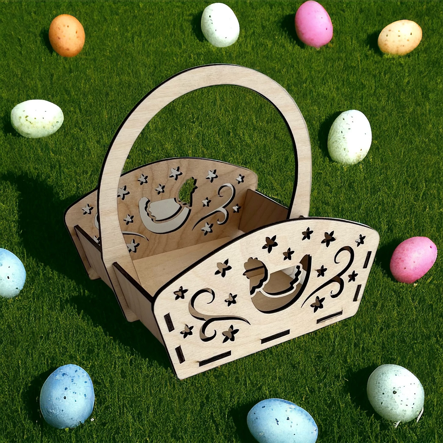 Ünnepelje a húsvéti időszakot ezzel az aranyos és kedves kis húsvéti tojásgyűjtő kosárkával, melyet kifejezetten gyermekek számára terveztünk! Ez a kosárka ideális ajándék lehet a kicsik számára, akik örömmel fogadják és használják majd a húsvéti tojások gyűjtésére és tárolására. A kosárka 3mm vastagságú rétegeltlemezből készült, így könnyű és tartós anyagból áll.