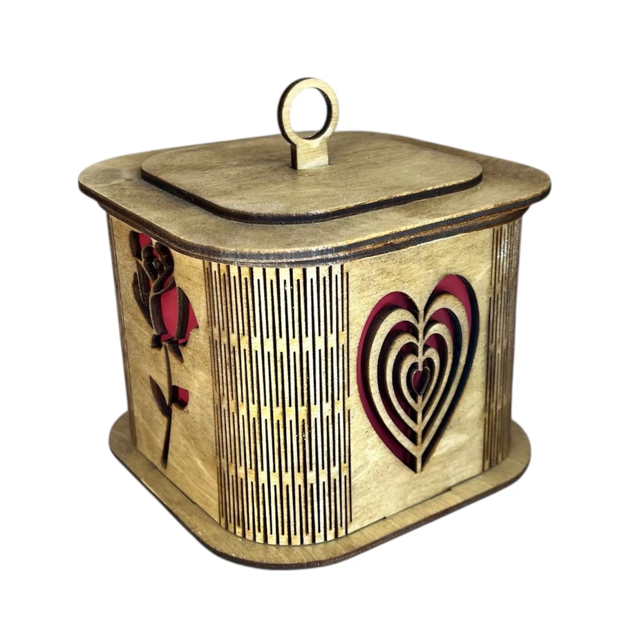 A juhar Valentinnapi lámpás lágy rózsaszín fényt sugároz, amely romantikus és meghitt atmoszférát teremt. A világos juhar fa és a szív mintázat különösen elegáns, modern megjelenést ad.