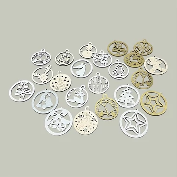 Különleges, fából készült karácsonyfadíszek. Tíz darab egyedi mintájú dísz, természetes és csillogó színekben, hogy meghitten ünnepivé varázsolja a karácsonyfádat.