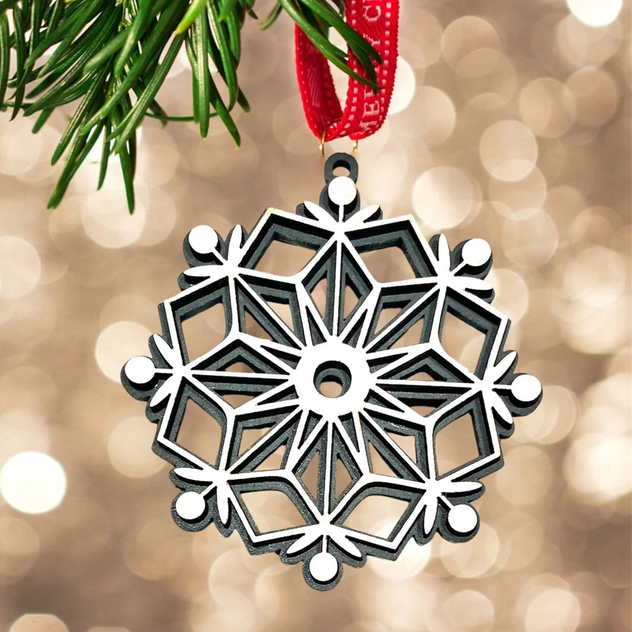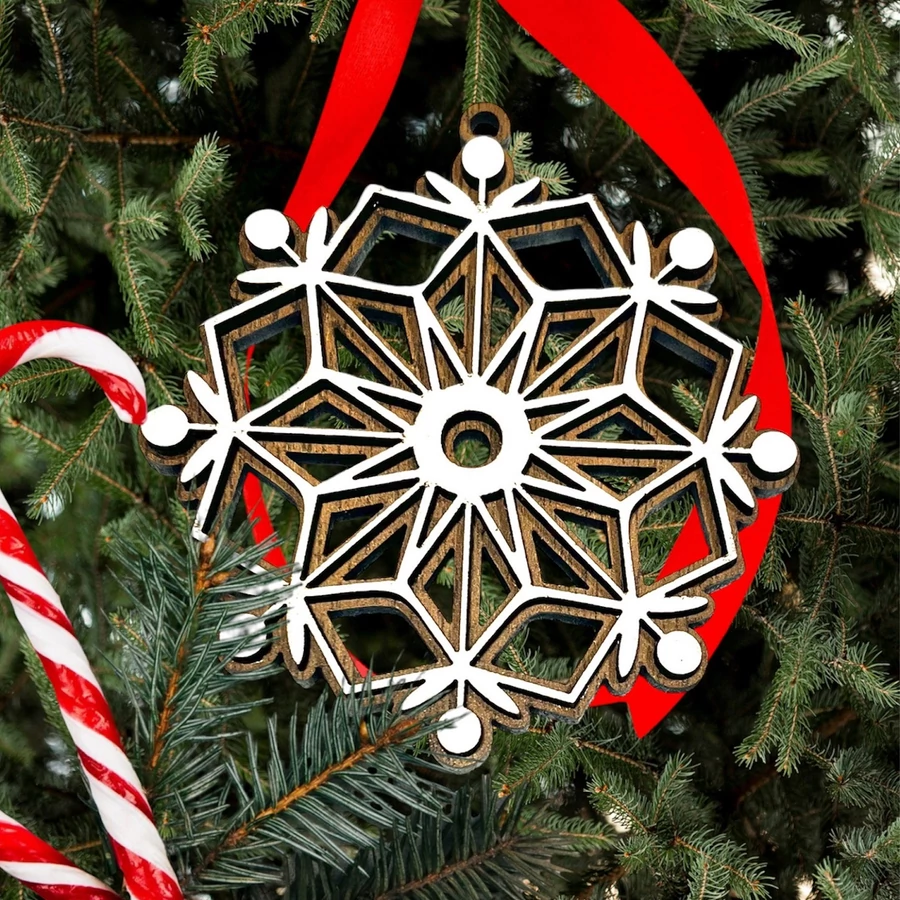 Ez a 3 mm-es rétegelt lemezből készült karácsonyfadísz elegáns hópehely mintázatával és kétoldalas kivitelezésével különleges dísze lesz a karácsonyfájának. Az egyik oldalon barna dió szín, míg a másikon szürke háttér található, így választható, hogy melyik oldal legyen látható. Részletgazdag kidolgozottsága biztosítja, hogy bármilyen karácsonyi dekorációhoz tökéletesen illeszkedjen.