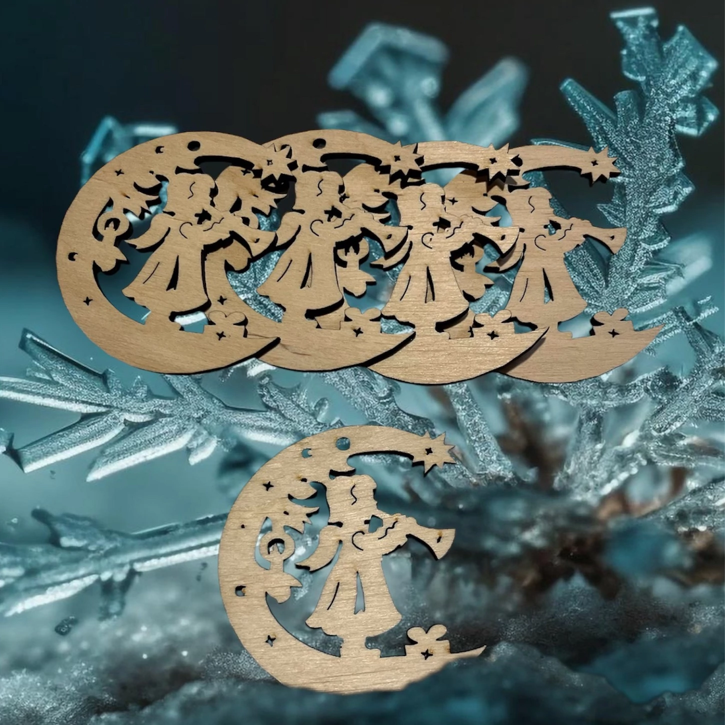 Dobja fel karácsonyfáját ezzel az 5 darabos, 3 mm-es rétegelt lemezből készült díszcsomaggal! A angyalkás mintázatú natúr karácsonyfadíszek letisztult stílusukkal bármilyen ünnepi dekorációhoz tökéletesen illeszkedik. Természetes színük révén tovább díszíthetők, vagy natúr állapotban is gyönyörűek.