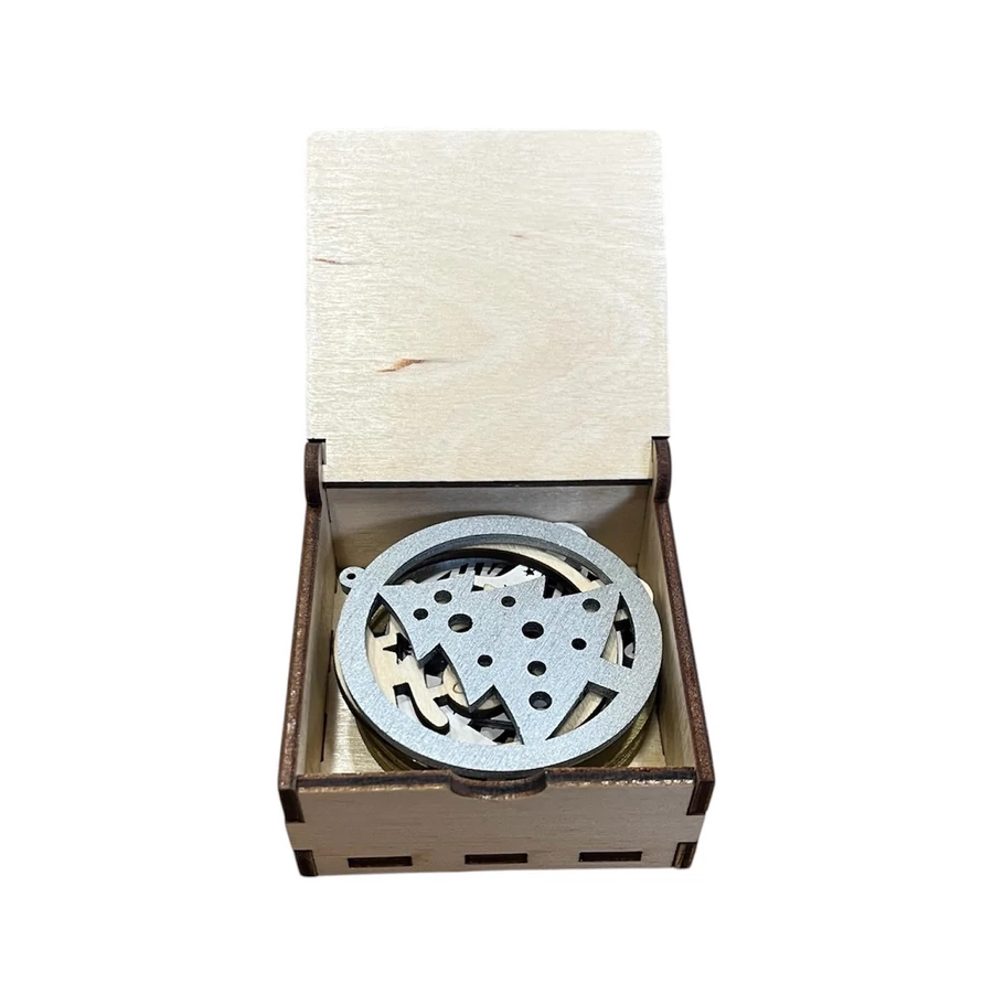 Mini karácsonyfadísz készlet díszdobozban – 6 db fa dísz