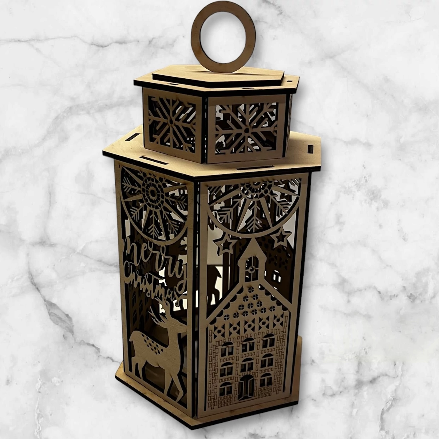 Ez a prémium minőségű, 3 mm-es rétegelt lemezből készült hatszögletű mécsestartó a karácsonyi dekoráció tökéletes kiegészítője. Rendkívül részletes kidolgozottsága és két különböző karácsonyi motivummal ,140x160 mm alapterületű és 250 mm magas , így impozáns, mégis elegáns megjelenést kölcsönöz.