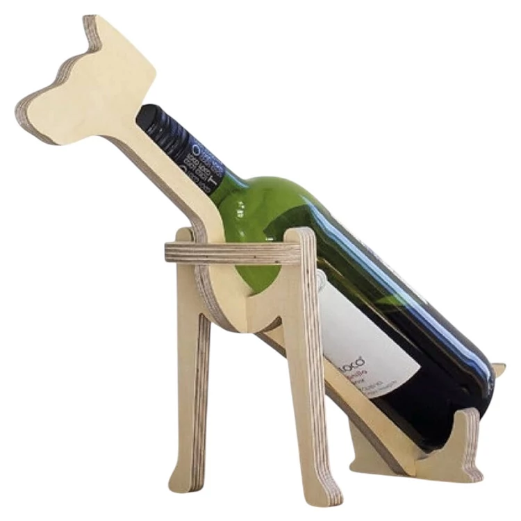 Kreatív, kutya alakú bortartó állvány, amely stílusosan tárol egy üveg bort. Természetes fa anyagból készült, így bármilyen enteriőrbe illeszkedik.