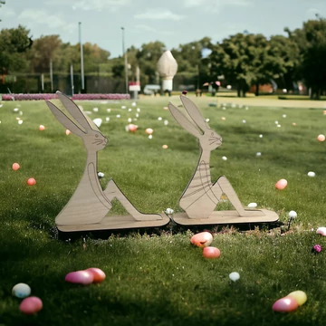 Ezek a varázslatos nyuszik igazi ékességei lesznek a húsvéti asztalnak. A kiváló minőségű 3mm vastag rétegeltlemezből készült.