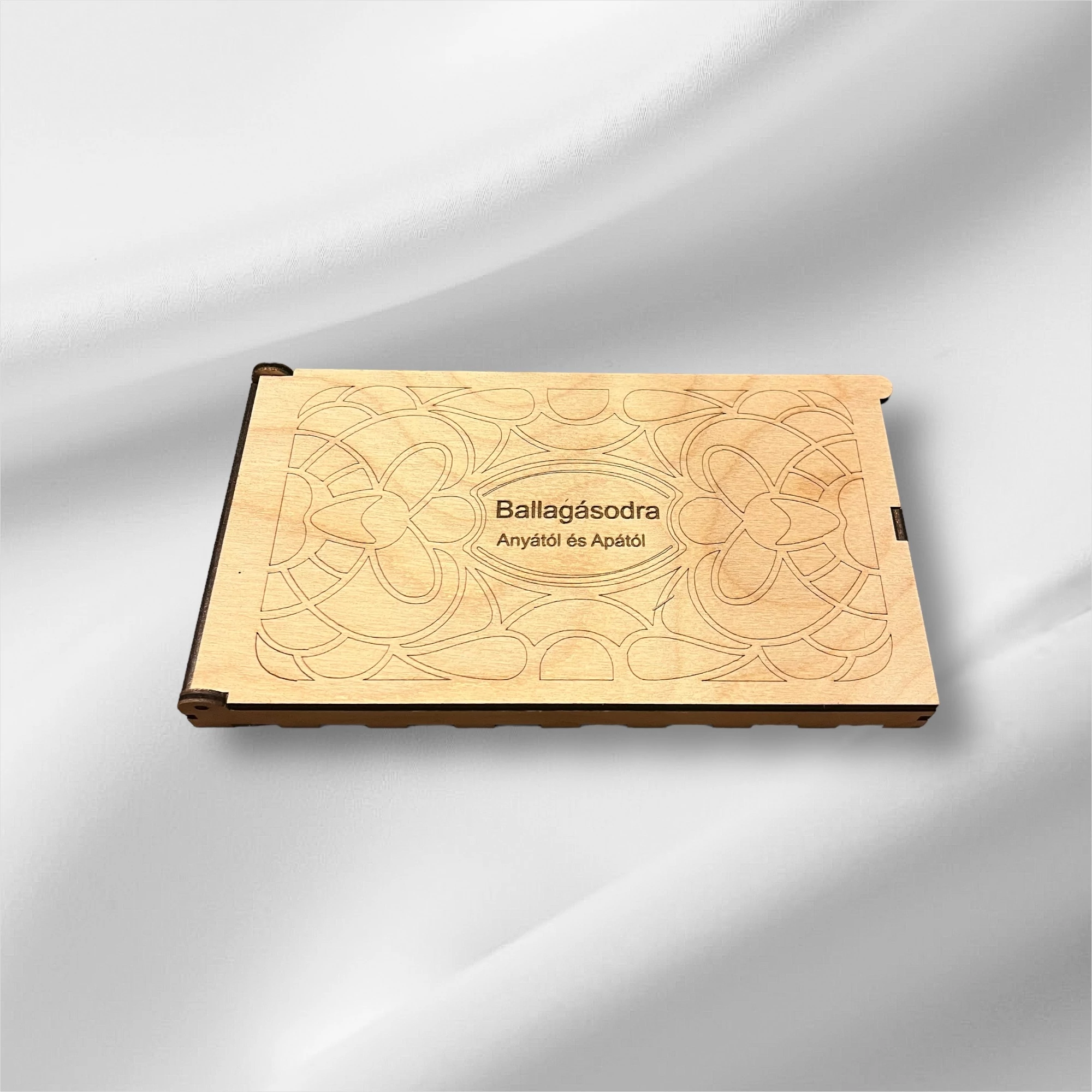 Ez a különleges pénzátadó dobozka nem csak egy ajándéktárgy, hanem egy emlék is, amely megőriz egy fontos pillanatot az életben. A 3 mm vastag rétegelt lemezből készült dobozka egyedi mintával és személyre szabott felirattal rendelkezik,(rendelés összegzésénél ,a megjegyzés rovatban adhatod meg a kívánt szöveget) hogy tökéletesen illeszkedjen az alkalomhoz, legyen az egy esküvő, ballagás vagy bármilyen más ünnepélyes esemény.