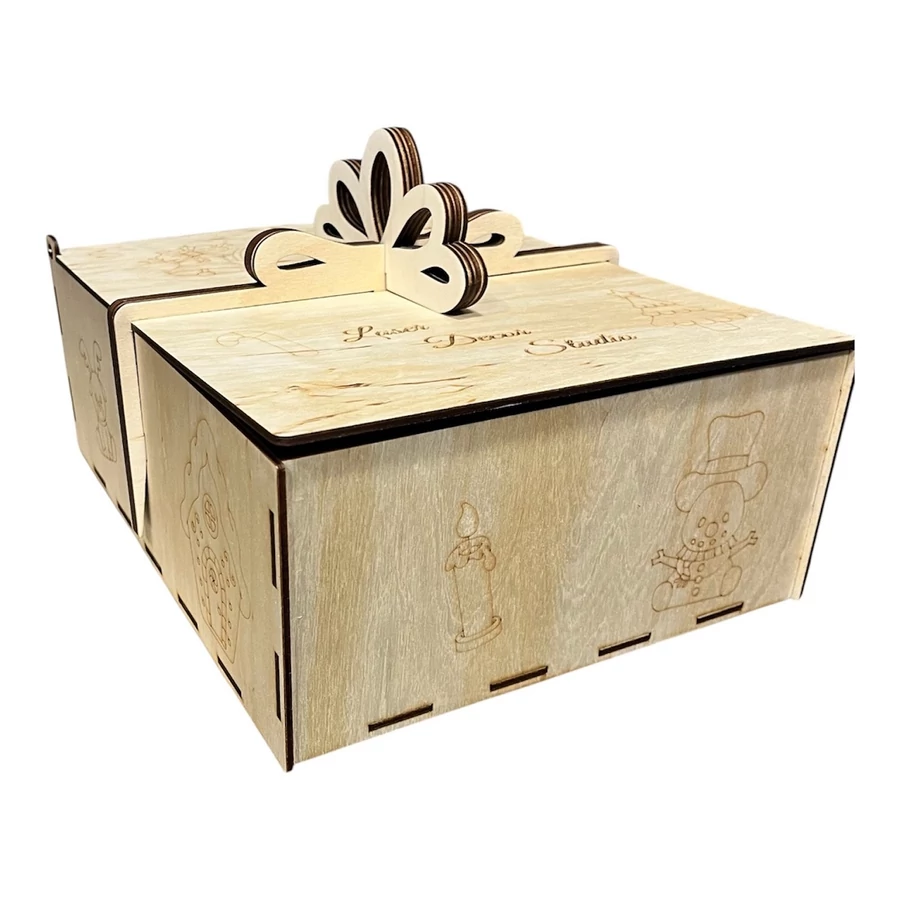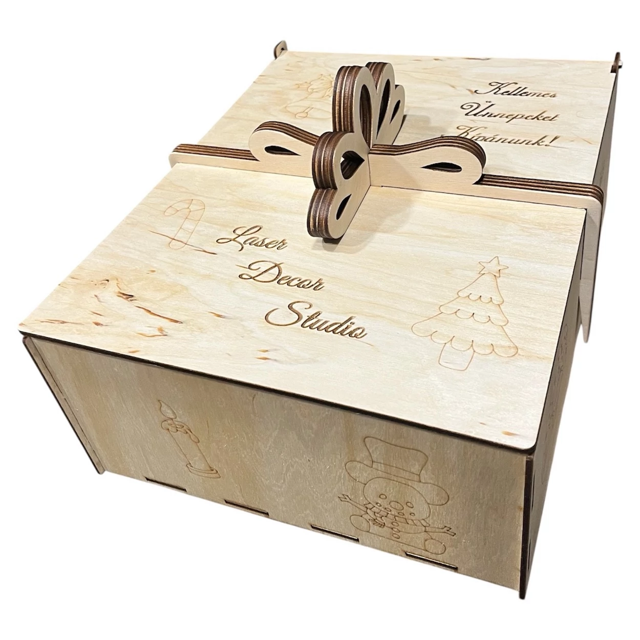 Személyre szabható fa ajándékdoboz masnival – karácsonyi díszcsomagolás
