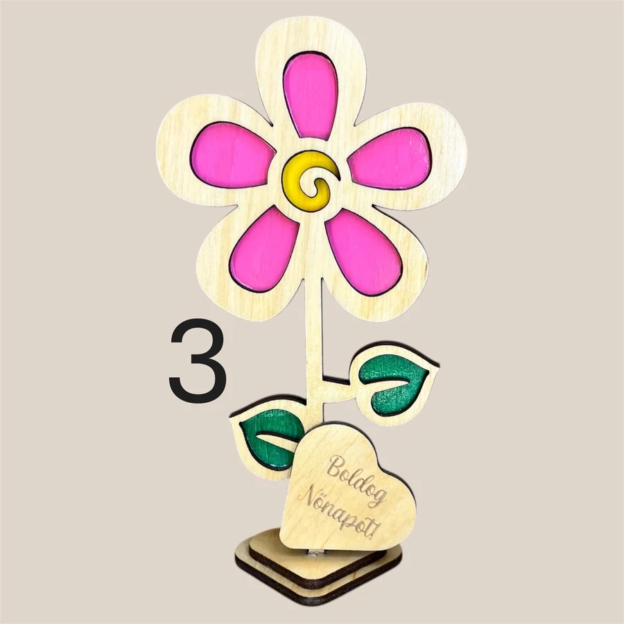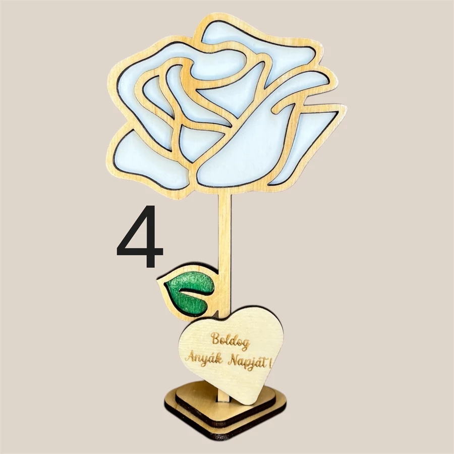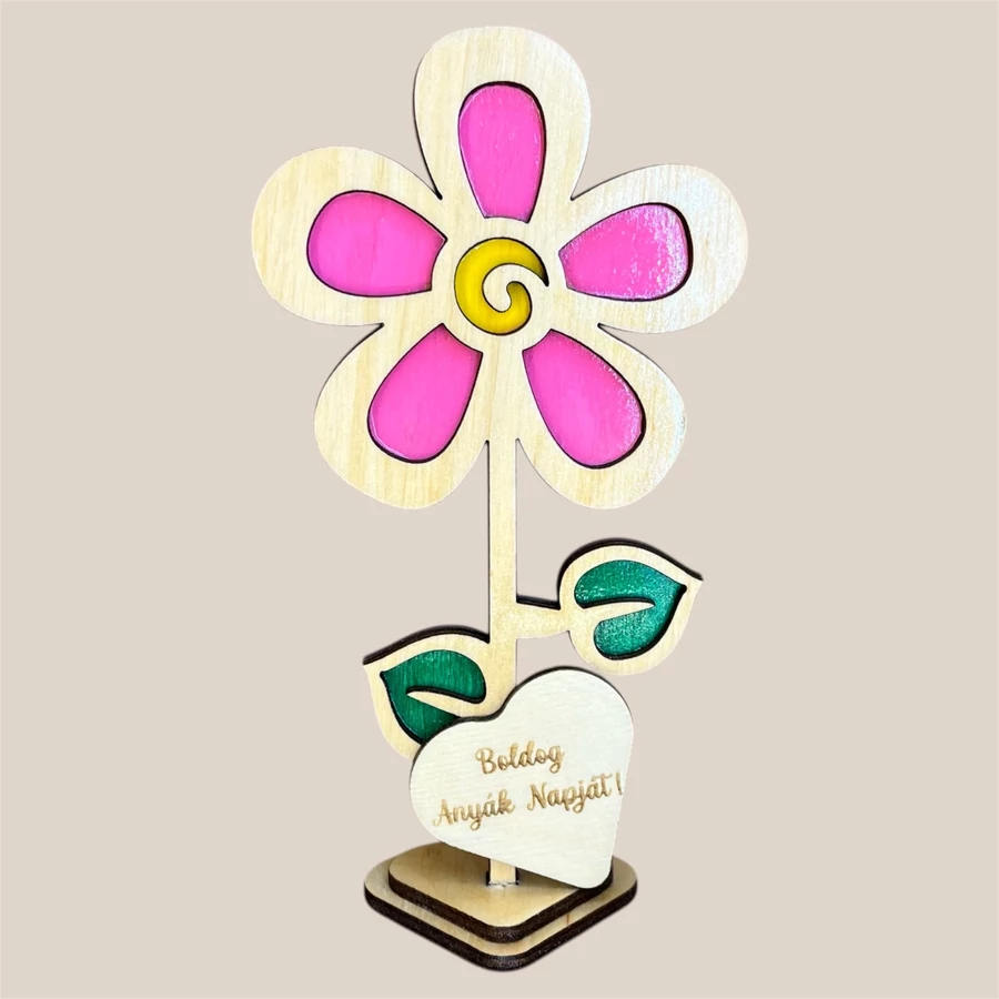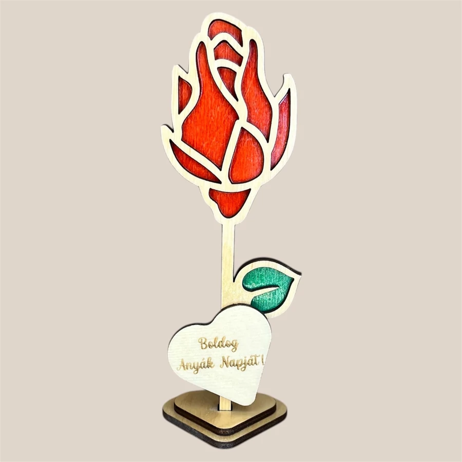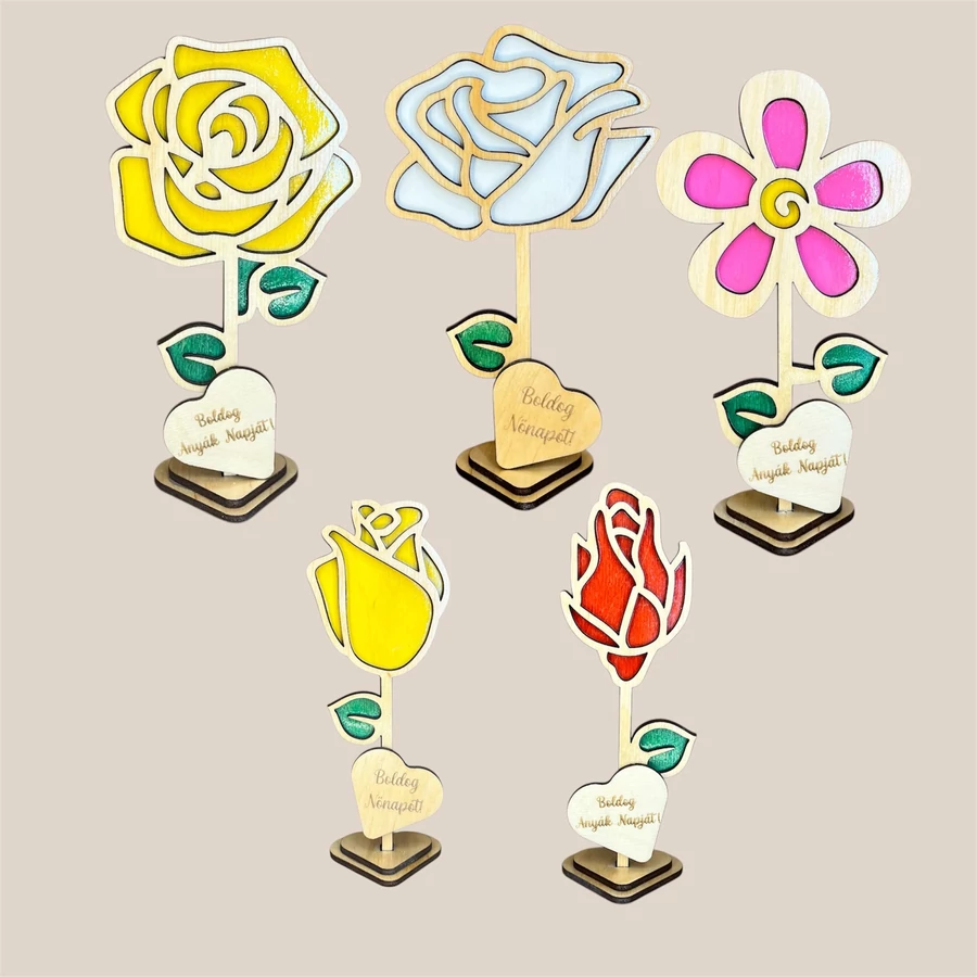 Különleges, lézervágott fa virág dekoráció 5 egyedi mintában, személyre szabható felirattal és színekkel. Tökéletes ajándék Anyák napjára, Nőnapra vagy bármilyen alkalomra, amikor szívből szeretnél üzenni.