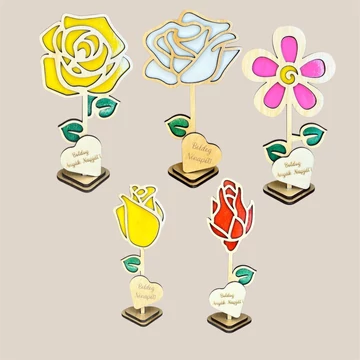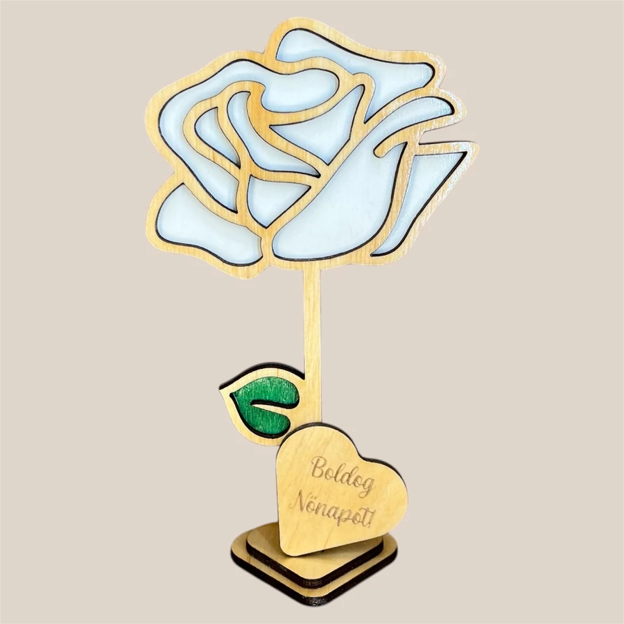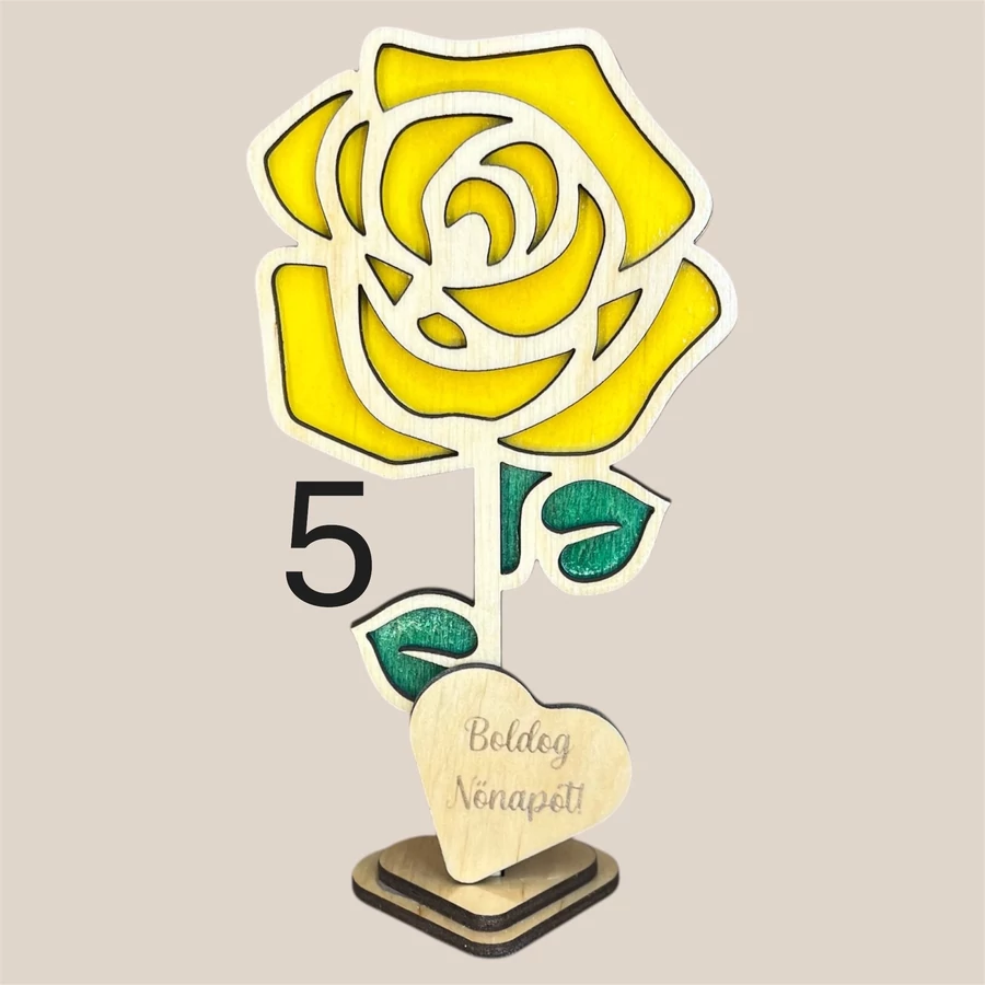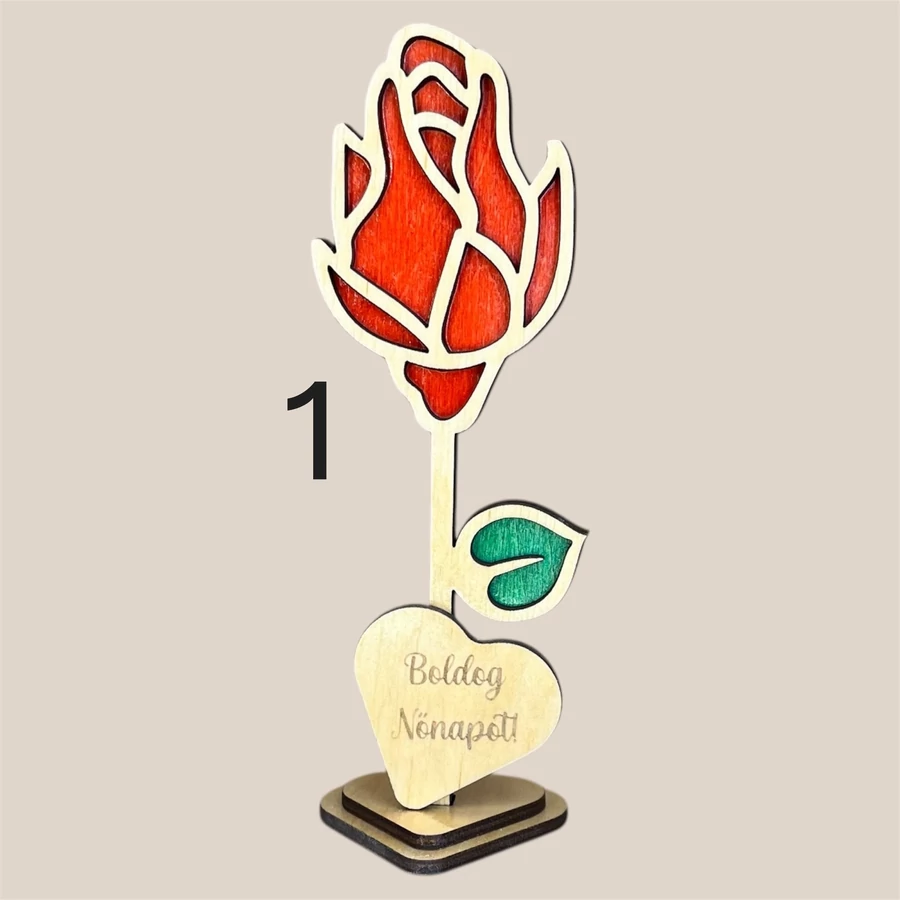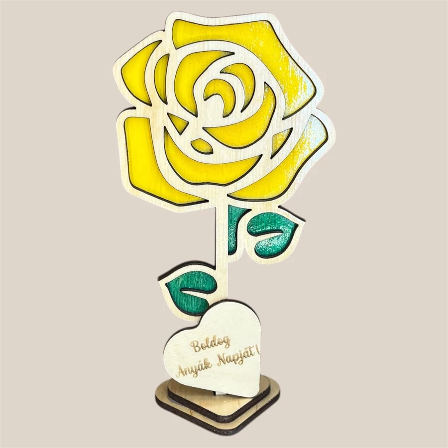 Különleges, lézervágott fa virág dekoráció 5 egyedi mintában, személyre szabható felirattal és színekkel. Tökéletes ajándék Anyák napjára, Nőnapra vagy bármilyen alkalomra, amikor szívből szeretnél üzenni.