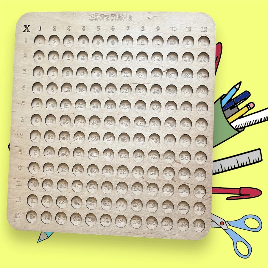 Ez a 3 mm-es rétegelt lemezből készült szorzótábla remek segítség a gyerekeknek a szorzás tanulásához. 300 mm x 300 mm-es kényelmes használatot biztosít, akár társasjátékként is. Tartós, könnyen kezelhető és játékos módon segíti a számolás fejlesztését.