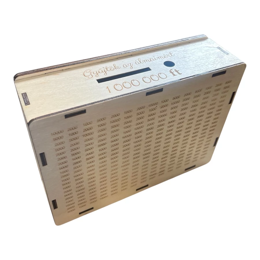 Elegáns, kétoldalas pénzgyűjtő doboz tájkép állatokkal, akár 1 millió forint összegyűjtésére. Diszkrét és dekoratív megoldás.