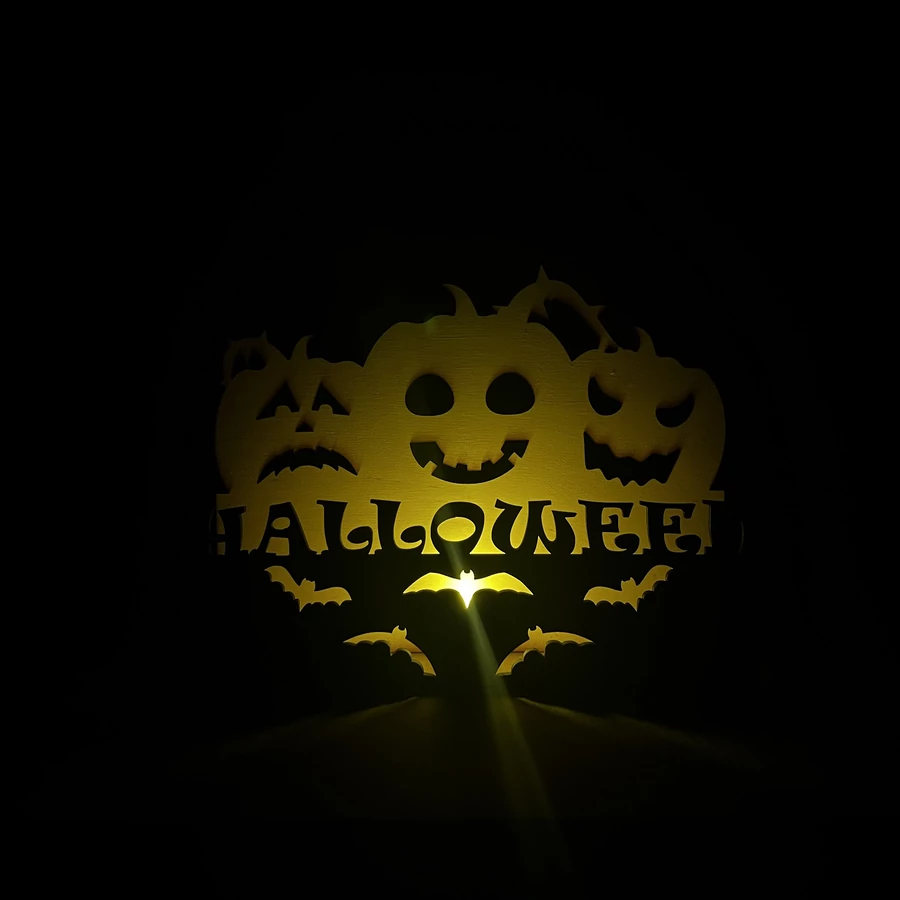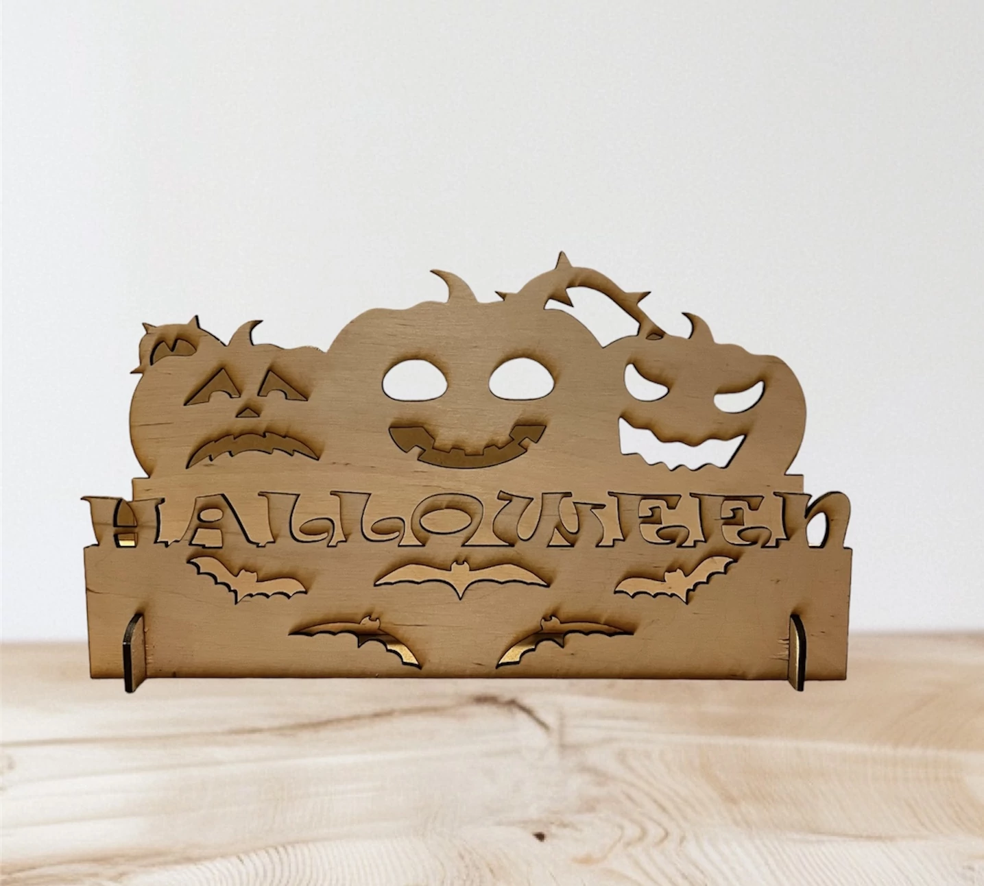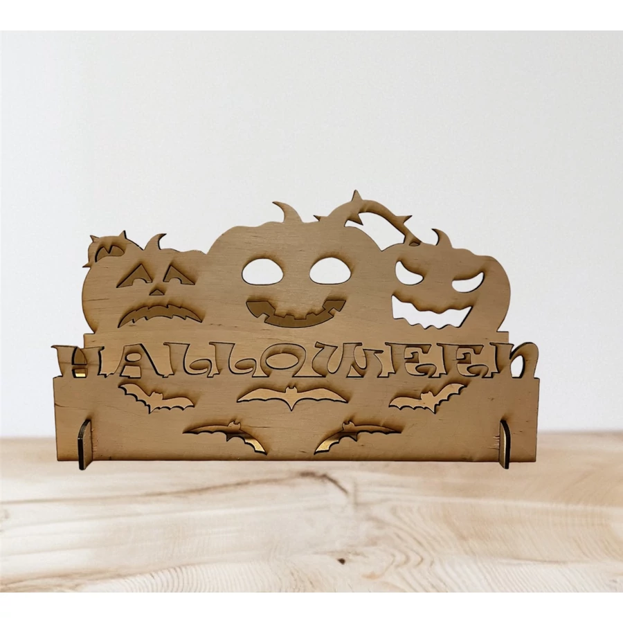 3 mm vastag rétegelt lemezből készült dekoráció, amely bármely Halloween-rajongót elvarázsol. A háttérben három rémisztő vigyor rejtőzik, ami biztosan néhány pillanat alatt átvisz téged és vendégeidet a Halloweeni borzongásba. A dekorációt élénkíti néhány denevér is, amelyek hozzájárulnak a szellemes atmoszférához.