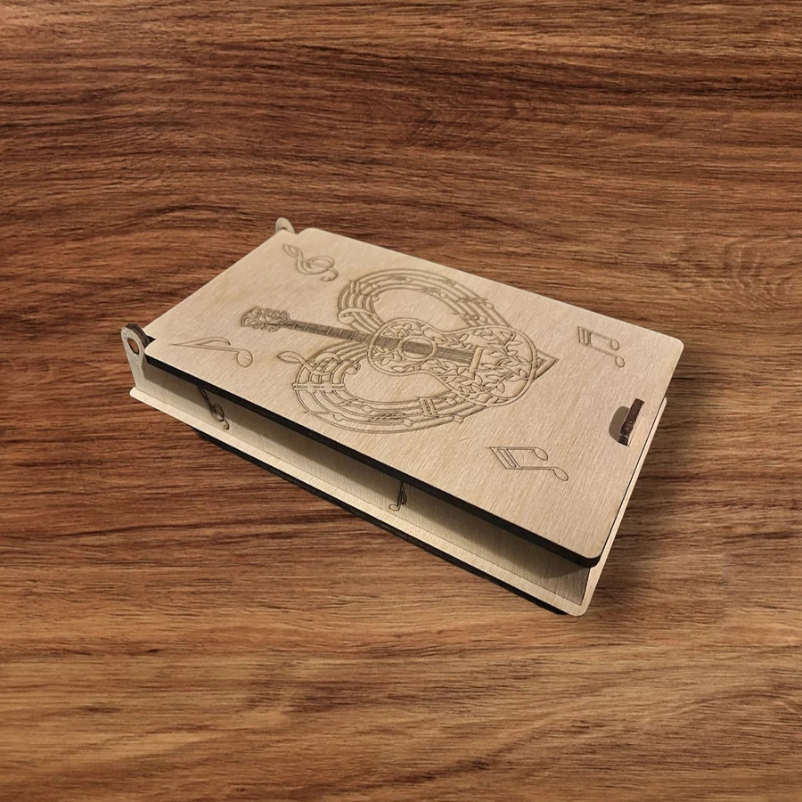 Ez a stílusos, 3 mm vastag rétegelt lemezből készült pénzátadó doboz tökéletes választás a zene szerelmeseinek! A szívbe foglalt gitár és a körülötte lebegő hangjegyek különleges ajándékká varázsolják ezt a dobozt, amely méltó kísérője lehet bármilyen ünnepélyes alkalomnak. Ne hagyd ki ezt az egyedi és művészi ajándéktárgyat, ami biztosan lenyűgözi az ajándékozottat!