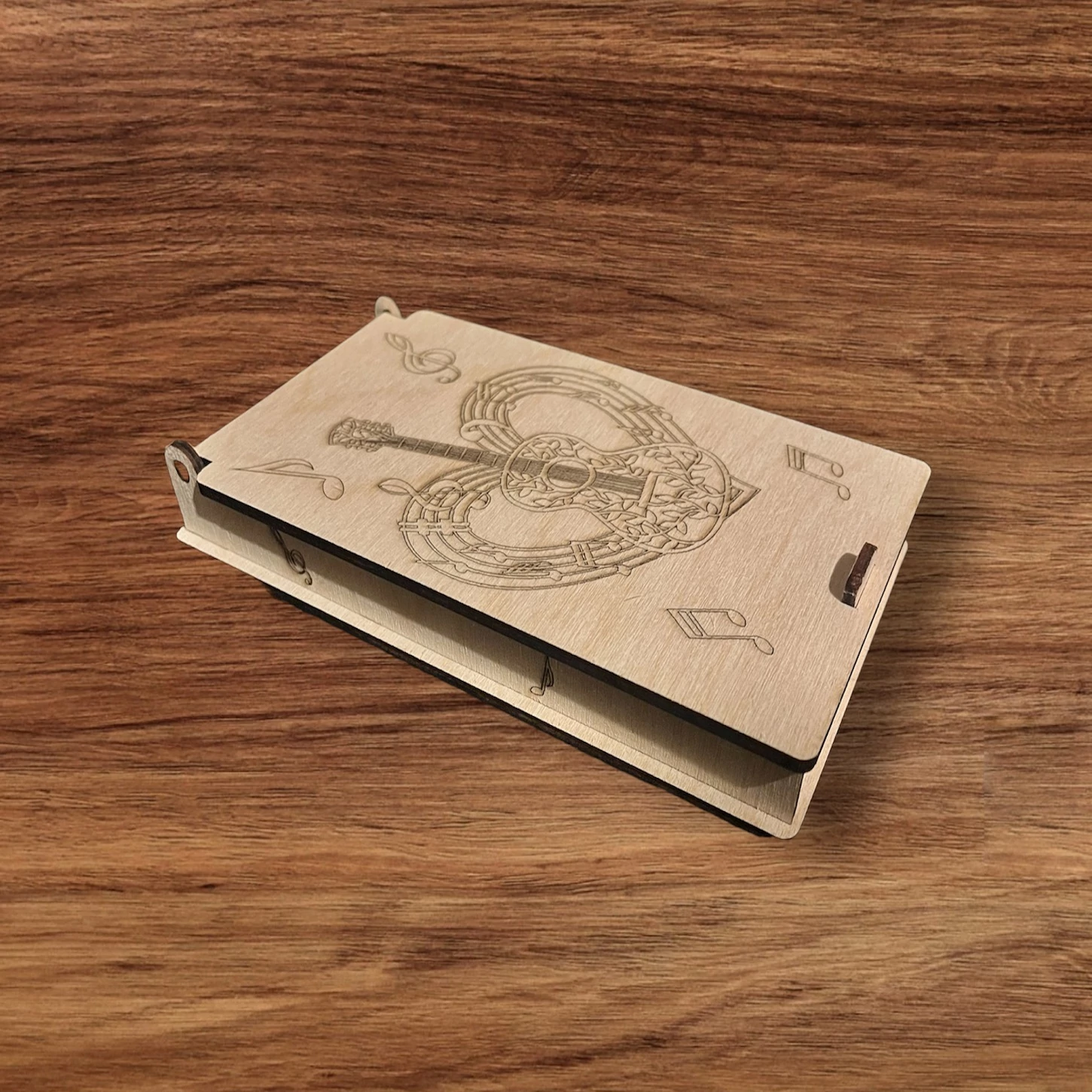 Ez a 3 mm vastag rétegelt lemezből készült pénzátadó doboz tökéletes ajándék mindazoknak, akik számára a zene az élet elengedhetetlen része. A dobozka központi motívuma egy szív, amelyet egy gyönyörű gitár és számtalan hangjegy díszít, szimbolizálva a zene iránti szenvedélyt és szeretetet.